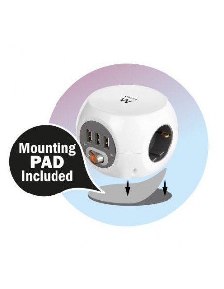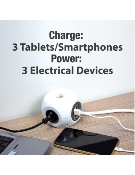 A extensão Ewent EW3939 é uma solução versátil e segura para organizar as suas ligações elétricas.  O seu design cúbico compacto economiza espaço na sua secretária, mantendo todas as ligações organizadas e de fácil acesso.  Com três tomadas AC tipo C e três portas USB, esta extensão permite carregar e alimentar simultaneamente até seis dispositivos. As portas USB oferecem uma corrente total de 2,4A, com proteção contra sobrecargas e curto-circuitos.  As tomadas AC incluem proteção infantil, garantindo a segurança, especialmente em casas com crianças. Um interruptor de ligar/desligar iluminado proporciona um controlo centralizado sobre todos os dispositivos conectados, permitindo desligar todos de uma só vez para uma maior segurança e economia de energia.  O cabo possui 1,5m de comprimento.  A sua construção robusta e os sistemas de segurança integrados garantem uma utilização confiável e segura.  A cor é branca.