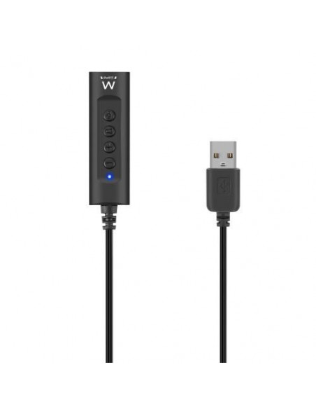 O adaptador de áudio USB Ewent EW3569 permite ligar auscultadores com mini-jack de 4 polos a um computador através de uma porta USB. Inclui botões de controlo integrados para o volume e para silenciar o microfone e os altifalantes.  Comprimento do cabo de 0,5 metros.