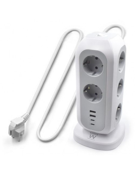 A régua de tomadas Ewent EW3861 é uma solução prática e segura para conectar múltiplos dispositivos. Com 11 tomadas AC e 4 portas USB (incluindo 2 USB-C com carregamento rápido), permite ligar até 15 dispositivos simultaneamente. O design de torre economiza espaço e o interruptor liga/desliga geral garante segurança e economia de energia. Ideal para escritórios e casas.