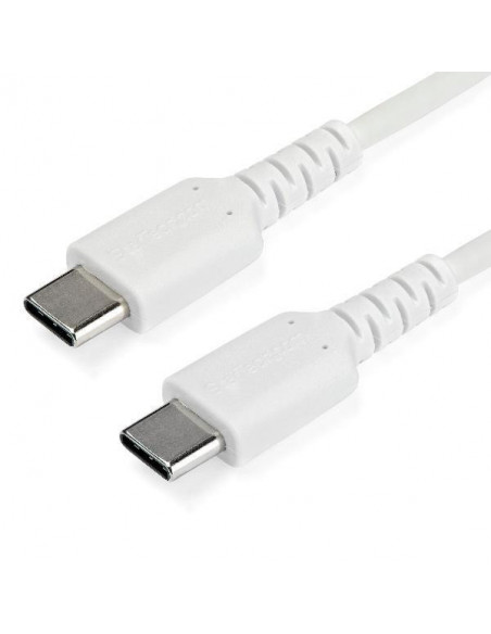 Cabo USB-C StarTech de alta qualidade, com 1 metro de comprimento e revestimento em fibra de aramida branca.  Oferece durabilidade e resistência excepcionais.