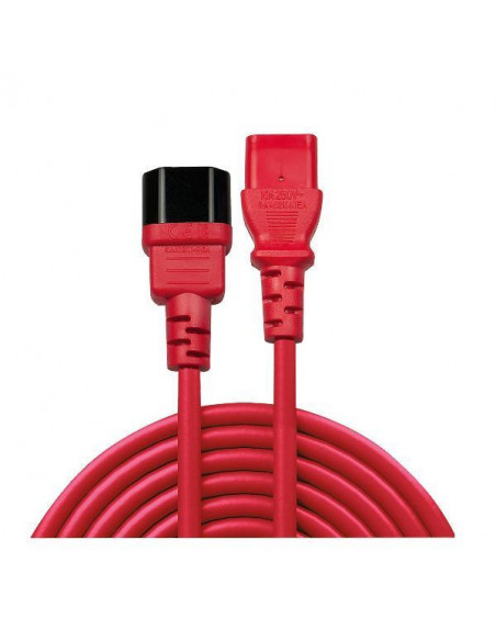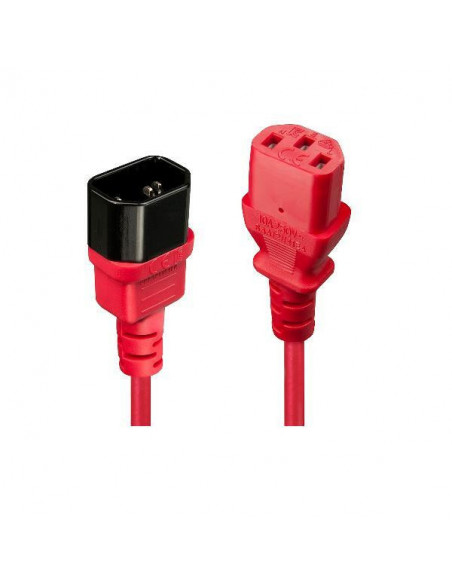 Cabo de extensão IEC C13 da Lindy, com 0,5 metros de comprimento e cor vermelha. Conector macho IEC C13 para conector fêmea IEC C13. Ideal para aumentar o alcance de ligação de equipamentos. Garantia de 36 meses.