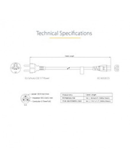 Cabo de Alimentação StarTech - 3m, Schuko para C5