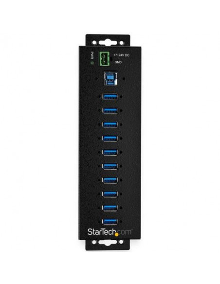 O Hub USB 3.0 Startech HB30A10AME fornece uma solução robusta e eficiente para expandir as suas opções de conectividade USB. Com 10 portas USB 3.0, permite ligar simultaneamente uma variedade de dispositivos, desde teclados e ratos a discos rígidos externos e impressoras. Embora a velocidade máxima seja de 500 Mbps, a capacidade de conectar tantos dispositivos simultaneamente torna este hub ideal para ambientes de trabalho com necessidades elevadas de conectividade.