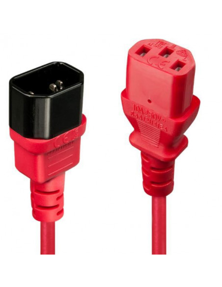 Cabo de extensão IEC C13 Lindy (30477), com 1 metro de comprimento e cor vermelha. Conectores IEC C13 macho e fêmea para uma ligação segura e fiável. Garantia de 24 meses.