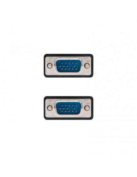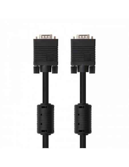 Cabo SVGA Nanocable com conectores HDB15 macho em ambas as extremidades, com comprimento de 3 metros. Inclui ferrites para redução de interferências e possui blindagem dupla para sinais de alta frequência. Ideal para ligação de monitores, projetores e PCs, suportando resoluções até 2048x1536.