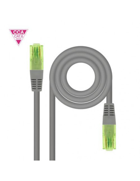 Este cabo de rede Nanocable é um latiguillo RJ45 Cat.6, com comprimento de 25 cm e cor cinza.  Construído com condutores de alumínio revestido a cobre (CCA), garante a mesma performance que um cabo de cobre puro. É um cabo UTP (Unshielded Twisted Pair) para uma transmissão de dados estável. Ideal para conexões curtas e de alta velocidade, até 10 Gbps.
