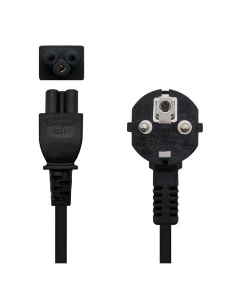 Este cabo de alimentação da Nanocable é uma solução prática e eficiente para conectar seus dispositivos eletrônicos à tomada elétrica.  Apresenta um conector CEE7 macho angular (90°) em uma extremidade e um conector C5 fêmea na outra, permitindo uma ampla compatibilidade com diversos equipamentos. O design angular do conector CEE7 facilita a instalação em espaços reduzidos. Com um comprimento de 2 metros, o cabo oferece flexibilidade suficiente para diversas aplicações.