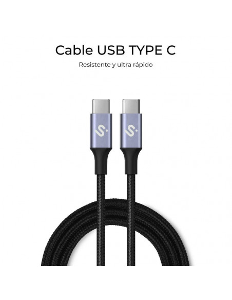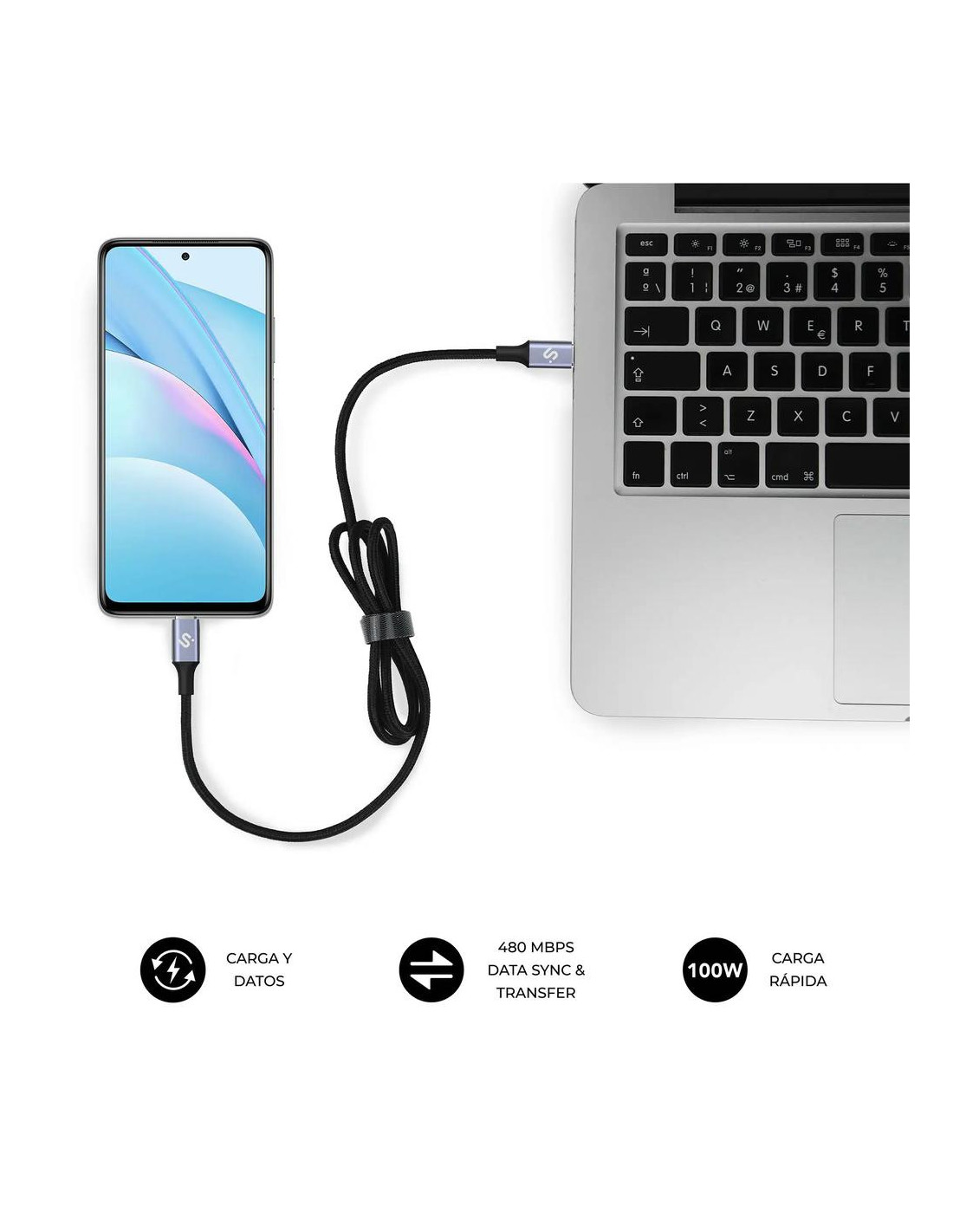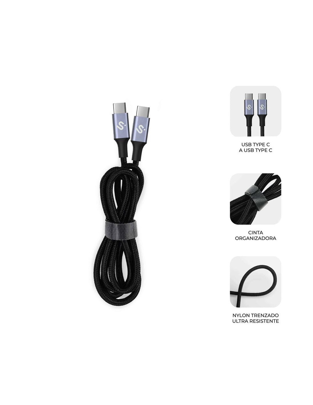 Cabo USB-C para USB-C Subblim Optimus, com 1 metro de comprimento e capacidade de carregamento rápido de até 60W (USB Power Delivery). Ideal para carregar rapidamente smartphones, tablets e laptops. Construído com materiais de alta qualidade, incluindo revestimento em nylon. Conectores reversíveis.