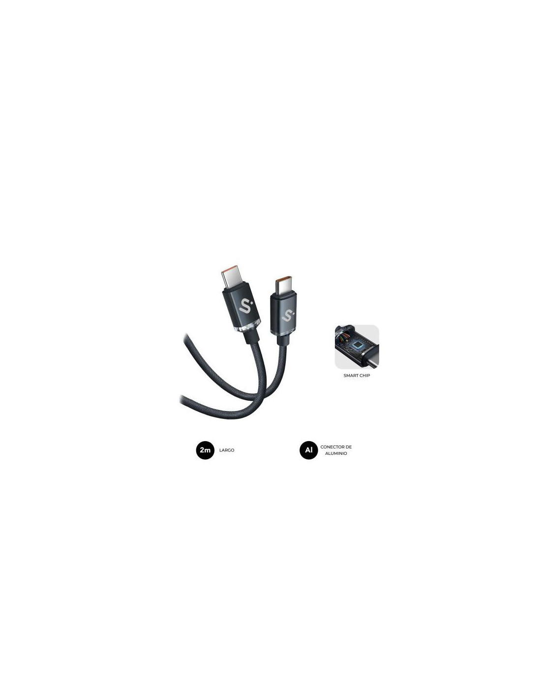 O cabo USB-C para USB-C Subblim Optimus é a solução ideal para quem procura um cabo versátil e de alta performance. Com um comprimento de 2 metros, oferece flexibilidade para conectar dispositivos a tomadas distantes ou usar o seu dispositivo enquanto carrega sem restrições de movimento.