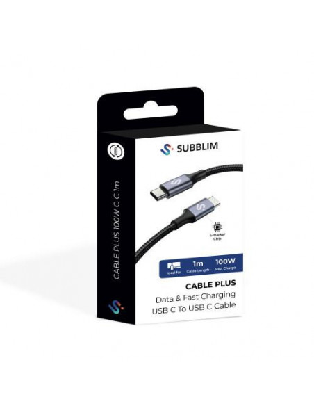 O cabo SUBBLIM PLUS USB-C para USB-C de 1 metro é a solução ideal para quem procura um carregamento rápido e eficiente, combinado com uma transferência de dados confiável. Com capacidade de potência de até 100W, este cabo proporciona carregamentos ultrarrápidos para smartphones, tablets e laptops de última geração. A tecnologia de carregamento rápido PD 3.0 e QC 3.0, em conjunto com o seu chip E-Marker inteligente, garante a segurança do dispositivo ao ajustar automaticamente a potência de carregamento, prevenindo sobrecargas e sobreaquecimento.