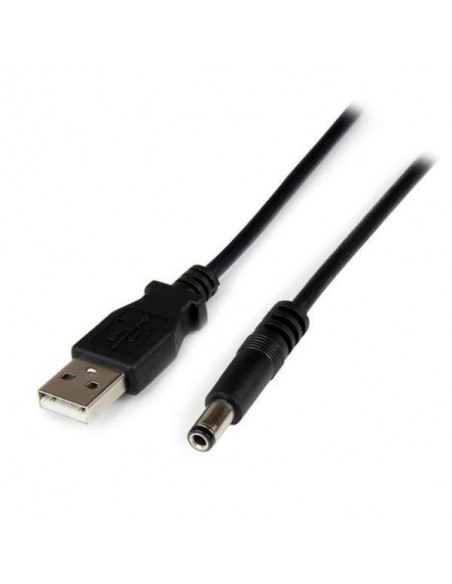 Cabo StarTech USB2TYPEN1M de 1 metro, que converte uma porta USB A num conector de alimentação tipo N (5,5 mm) para alimentar dispositivos externos de 5V DC.  Ideal para aplicações móveis, eliminando a necessidade de um adaptador de parede. Conector USB A macho para conector de barril de 5,5 mm. Cor preta.
