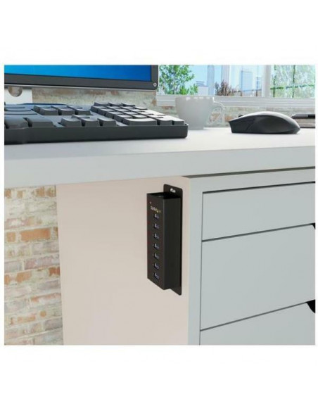 O concentrador USB 3.0 de 7 portas StarTech.com ST7300U3M é uma solução versátil e durável para expandir a conectividade USB do seu computador.  Com um design compacto e uma caixa de metal robusta, este hub é perfeito tanto para uso em mesa como para uso portátil.  A sua construção sólida garante resistência a desgastes diários, tornando-o ideal para ambientes de escritório ou domésticos com uso frequente. A inclusão de um suporte de montagem permite que o hub seja fixado em superfícies, como mesas ou paredes, otimizando o espaço e a organização dos seus periféricos.  A disposição vertical das portas USB facilita a conexão e desconexão de dispositivos, especialmente úteis para profissionais de informática que precisam de acessar e desconectar regularmente os seus dispositivos.  As sete portas USB 3.0 oferecem velocidades de transferência de dados de até 5 Gbps (Gigabits por segundo), garantindo um desempenho superior em comparação com as gerações anteriores de USB.  A compatibilidade com dispositivos USB 2.0 e 1.x garante a versatilidade do hub, permitindo a conexão de uma vasta gama de periféricos, desde discos rígidos externos e impressoras até teclados e ratos.  A tecnologia UASP (USB Attached SCSI Protocol) em dispositivos de armazenamento compatíveis assegura a otimização das velocidades de transferência. Este hub funciona também como um repetidor USB, expandindo o alcance dos seus periféricos.  Para informações adicionais, pode consultar o site do fabricante em http://www.startech.com. A StarTech.com oferece uma garantia de dois anos e suporte técnico gratuito de por vida, demonstrando o seu compromisso com a qualidade e satisfação do cliente.