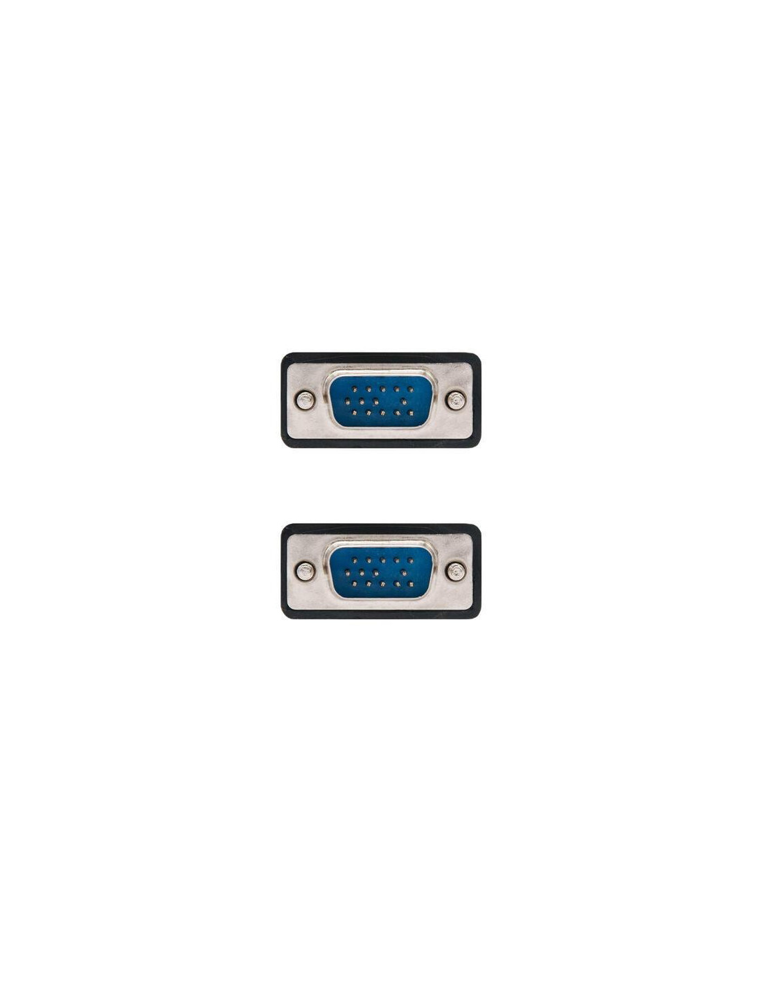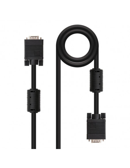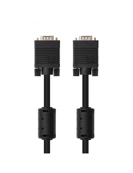 Cabo SVGA Nanocable de alta qualidade, com conectores HDB15 macho em ambas as extremidades, ideal para ligar monitores, projetores e computadores. Comprimento de 1,8 metros. Oferece blindagem dupla e ferrites para minimizar interferências eletromagnéticas, garantindo uma transmissão de sinal limpa e uma imagem nítida. Suporta resoluções até 2048x1536 pixéis. Compacto e durável, este cabo assegura uma ligação estável e confiável.