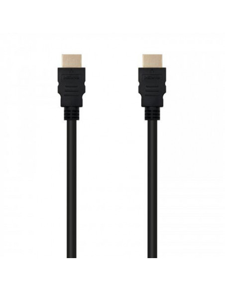 Cabo HDMI Nanocable, modelo 10.15.0303, versão 1.3b, com conectores tipo A macho em ambas as extremidades e comprimento de 3 metros. Oferece alta qualidade de transmissão de vídeo e áudio, com resolução até 1080p e taxa de atualização de 120Hz. Construído com materiais de alta qualidade, incluindo conectores banhados a ouro 24K e blindagem multicamada para minimizar interferências. Compatível com Dolby TrueHD e DTS-HD, garantindo uma experiência áudio imersiva. Ideal para ligar dispositivos de alta resolução.