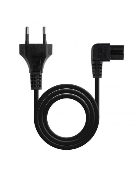 Cabo de alimentação Nanocable angulado, com conectores CEE 7/16 macho e C7 fêmea, 1,8m de comprimento. Ideal para espaços reduzidos, suporta até 1500W.