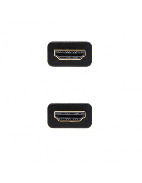 Cabo HDMI V2.0 Nanocable com 1 metro de comprimento, revestimento em nylon trançado, oferecendo alta velocidade de transferência de dados até 18Gbps e suporte a resoluções de vídeo até 4K@60Hz.  Ideal para transmitir imagens nítidas e vibrantes.
