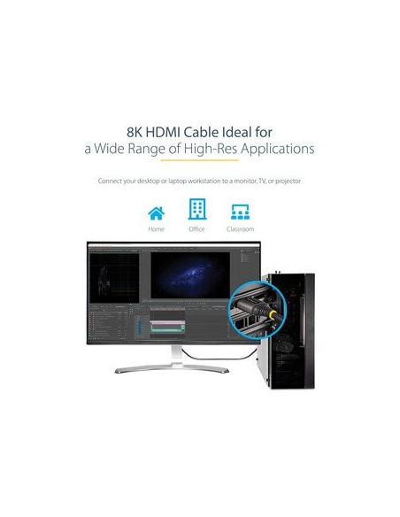 Este cabo HDMI 2.1 de alta performance da StarTech.com proporciona uma experiência visual e auditiva de última geração. Com um comprimento de 2 metros (6,6 pés), este cabo certificado de ultra alta velocidade garante a transmissão de dados a 48Gbps, essencial para suportar as mais altas resoluções e taxas de atualização disponíveis atualmente.