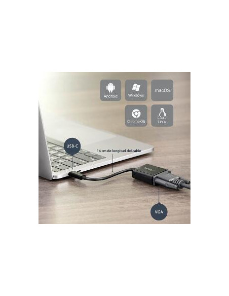 O adaptador de vídeo StarTech.com CDP2VGA oferece uma solução simples e prática para conectar seu dispositivo USB Type-C a um monitor, projetor ou televisor VGA.  Com suporte para resoluções de vídeo de alta definição, até 1920 x 1200 ou 1080p, este adaptador garante imagens nítidas e vibrantes, mesmo em dispositivos mais antigos.