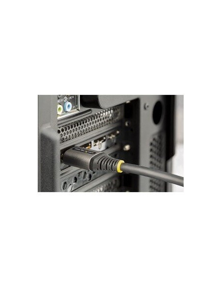 O cabo HDMI StarTech de 2 metros, certificado Premium, é uma escolha ideal para quem procura uma conexão de alta qualidade e alta velocidade para dispositivos de alta resolução. Este cabo de alta performance suporta resolução Ultra HD 4K a 60Hz (3840x2160), oferecendo imagens nítidas e vibrantes com detalhes impecáveis.  As tecnologias suportadas incluem HDR10 para um alcance dinâmico aprimorado e cores mais ricas, assim como Ethernet para conectividade de rede integrada.  O cabo possui conectores banhados a ouro, que garantem uma condutividade superior e proteção contra corrosão, assegurando um sinal estável e sem interferências. A construção robusta, com blindagem EMI, protege contra interferências eletromagnéticas, assegurando uma transmissão de sinal confiável.  O cabo foi rigorosamente testado, suportando mais de 10000 inserções e mais de 600 ciclos de dobragem em um ângulo de 120°, demonstrando grande resistência e durabilidade.  Compatível com uma vasta gama de dispositivos, incluindo computadores, portáteis, televisores, monitores, projetores e consolas de jogos, este cabo é uma solução versatil e duradoura para todas as suas necessidades de conexão HDMI. O cabo apresenta um design elegante e discreto em tons de cinzento e preto.