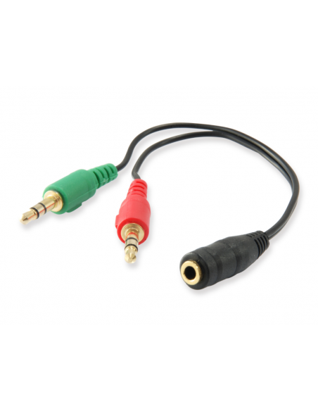 O Cabo Adaptador Equip 147942 é um repartidor de áudio compacto e prático, ideal para conectar um dispositivo de áudio a dois auscultadores ou altifalantes simultaneamente. Com conectores jack de 3,5 mm, este adaptador facilita a partilha de áudio, seja em casa, no escritório ou em viagens. O cabo é feito de policloreto de vinil (PVC) resistente e durável, com um comprimento de 13 cm, proporcionando flexibilidade na sua utilização.  A sua cor preta discreta integra-se facilmente em qualquer ambiente.