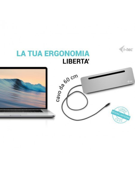 A docking station i-tec USB-C 3x 4K é uma solução de alta performance para expandir as capacidades do seu portátil.  Com suporte para três monitores 4K, esta estação permite uma experiência visual imersiva e multitarefa eficiente.  O seu design elegante em alumínio cinzento garante robustez e um aspeto profissional.