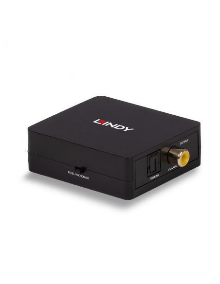 O conversor de áudio digital SPDIF da Lindy converte sinal óptico Toslink para RCA. Oferece transmissão de áudio digital sem perda de qualidade. Conectores Toslink e RCA fêmeas. Design compacto e cor preta.