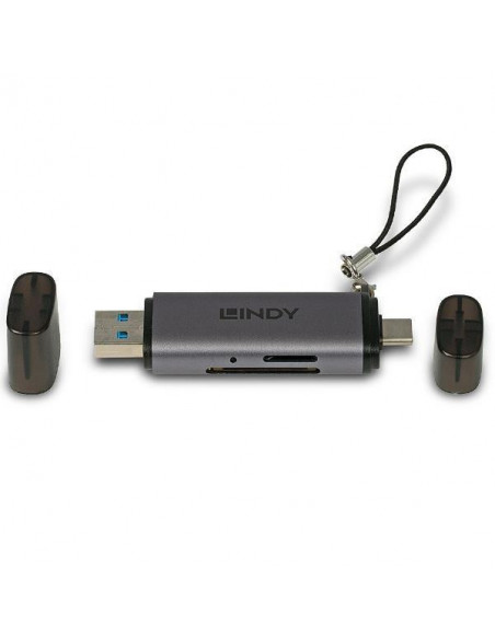 Este leitor de cartões Lindy oferece uma solução prática e eficiente para transferir dados de cartões SD e Micro SD para computadores e outros dispositivos. O seu design compacto e leve torna-o ideal para transportar em qualquer lugar.  A versatilidade é uma das suas principais características, graças à sua dupla compatibilidade. Apresenta conectores USB-C e USB-A, permitindo a sua utilização com uma ampla variedade de dispositivos, tanto os mais recentes com portas USB-C como os mais antigos com portas USB-A. Não será necessário procurar adaptadores adicionais, simplificando o processo de transferência de dados.