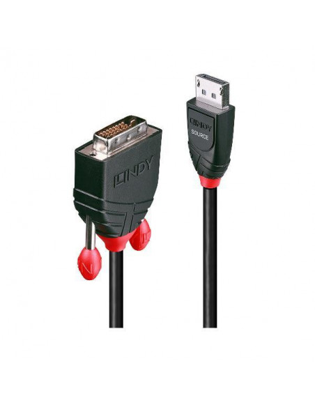 Cabo DisplayPort para DVI Lindy de 0,5 metros, ideal para conexões curtas e organizadas. Conectores DisplayPort macho e DVI-D macho para uma conexão segura e estável. Cor preta. Garantia de 24 meses.