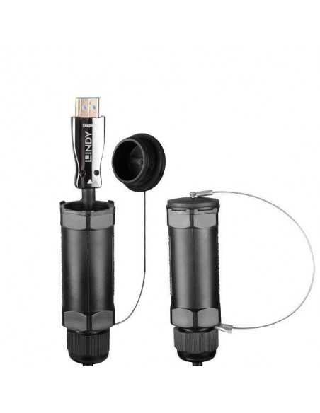 O cabo HDMI Lindy de alta performance oferece transmissão de vídeo de longa distância em alta resolução (até 8K a 60Hz). Com 100 metros de comprimento, utiliza tecnologia híbrida de fibra óptica para garantir transmissão impecável do sinal. Seu revestimento robusto protege contra danos. Conectores HDMI macho em ambas as extremidades.