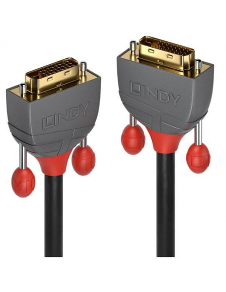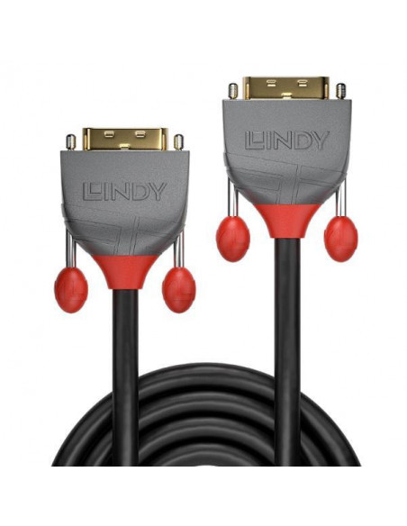 Cabo DVI-D Dual Link da Lindy com 0,5 metros de comprimento, conectores macho em ambas as extremidades e cor antracite. Ideal para conexões curtas de dispositivos com interface DVI-D. Garantia de 24 meses.