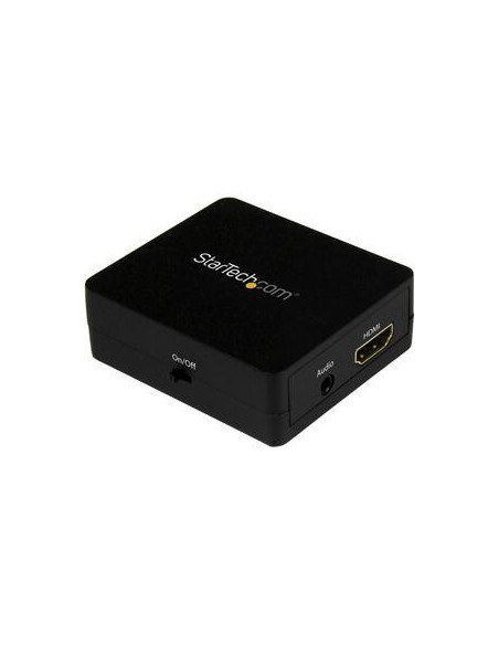 O Extractor de Áudio HDMI StarTech.com HD2A permite separar o áudio estéreo do sinal de vídeo HDMI e conectá-lo a um dispositivo de áudio de 3,5 mm ou a um sistema TOSLINK® através de um adaptador incluído. Ideal para integrar dispositivos HDMI com sistemas de áudio existentes. Compatível com resoluções até 1080p (1920x1080).