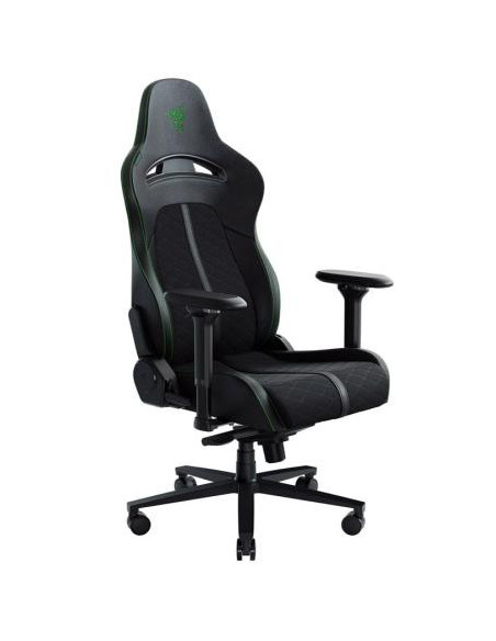 A Razer Enki é uma cadeira gaming projetada para o máximo conforto e ergonomia durante longas sessões de jogo. Construída para suportar utilizadores com um peso máximo de 136 kg, esta cadeira apresenta um assento acolchoado e um design que abraça o corpo, proporcionando suporte ideal à coluna vertebral. A sua estrutura robusta, em alumínio, garante estabilidade e durabilidade, suportando o peso do utilizador sem comprometer o conforto.