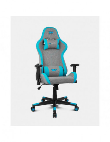 A cadeira gaming Drift DR90 Pro, numa combinação de azul e cinza, oferece conforto e ergonomia para longas sessões de jogo. Com um design moderno, inclui apoio lombar e cervical ajustáveis, repousa braços 2D, ajuste de altura e um mecanismo de inclinação até 135°. A sua estrutura robusta suporta até 150kg.