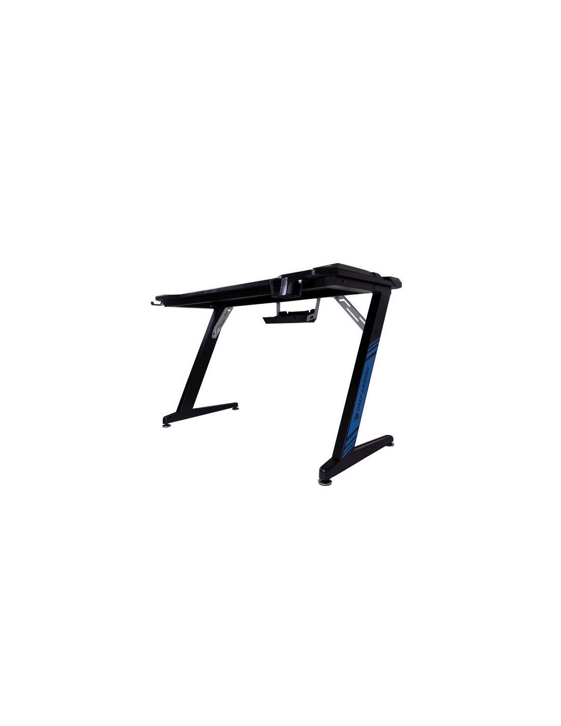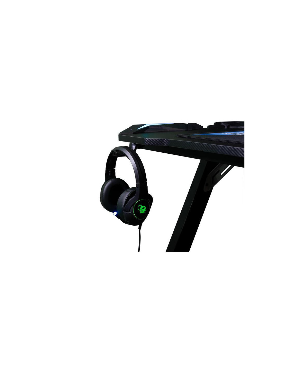 Esta mesa destaca-se pela sua iluminação LED RGB integrada, que pode ser personalizada para criar o ambiente perfeito para os seus jogos. O controlo da iluminação é simples e intuitivo, permitindo-lhe alternar entre diferentes modos e cores. Para maior conveniência, a mesa inclui um suporte integrado para os seus auscultadores, mantendo-os organizados e acessíveis. Um descanso para bebidas de grande dimensão está incluído, permitindo-lhe manter a sua bebida ao seu alcance sem risco de derrames nos seus periféricos.