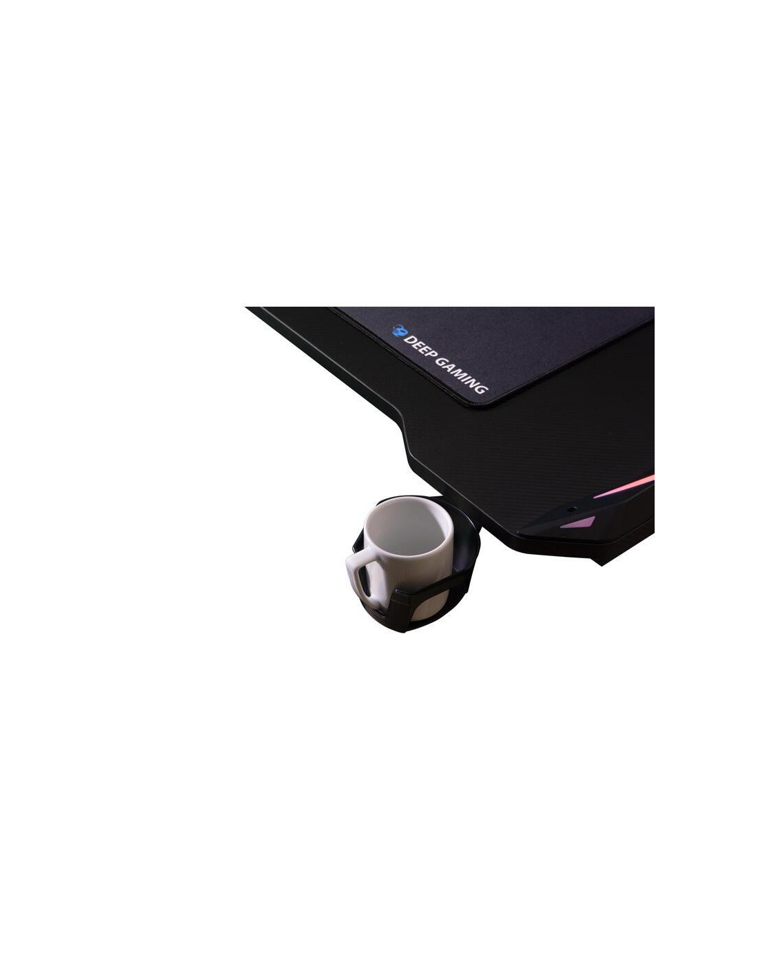A Coolbox Deep RGB-Master II é uma mesa gaming de alta qualidade, projetada para proporcionar o máximo conforto e funcionalidade durante as suas sessões de jogo. A sua ampla superfície permite-lhe organizar confortavelmente todos os seus periféricos, do monitor ao teclado e rato, sem se sentir limitado no espaço. A textura de fibra de carbono do tampo da mesa confere um toque moderno e elegante, enquanto a sua construção robusta garante durabilidade e estabilidade.