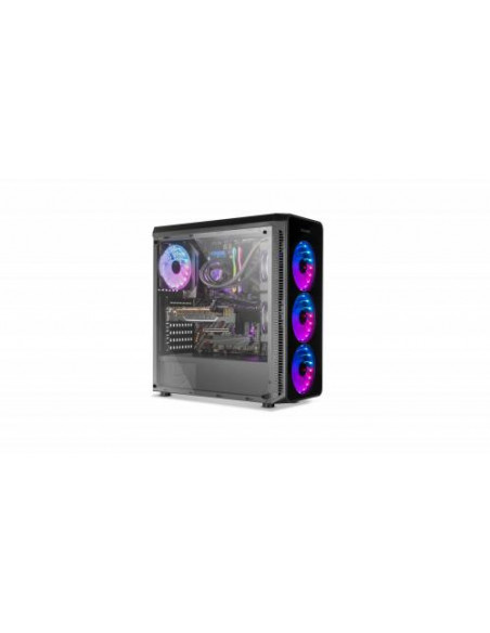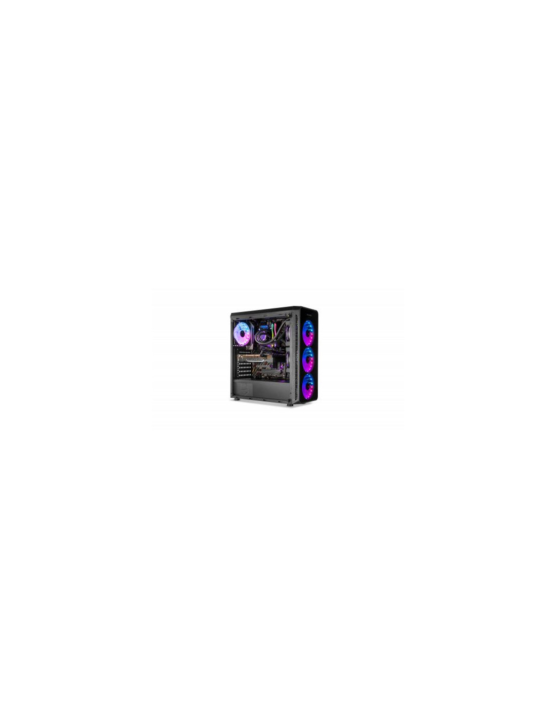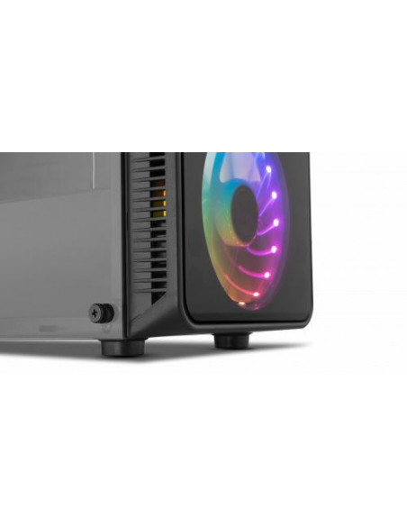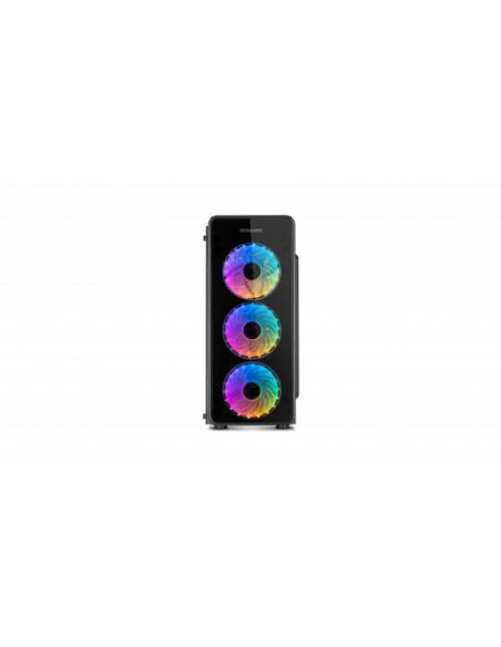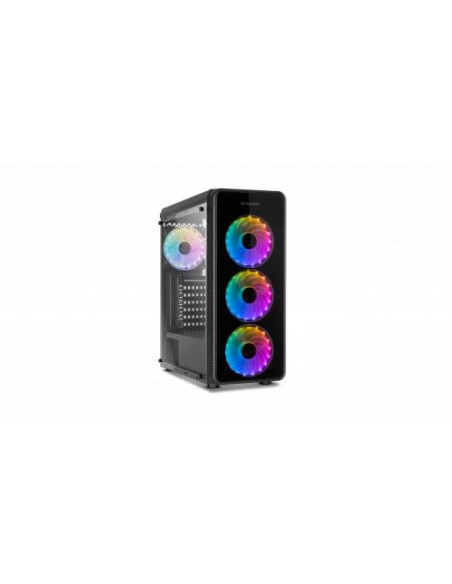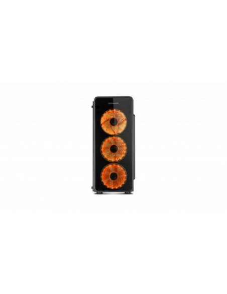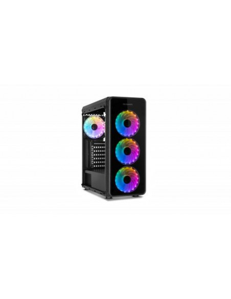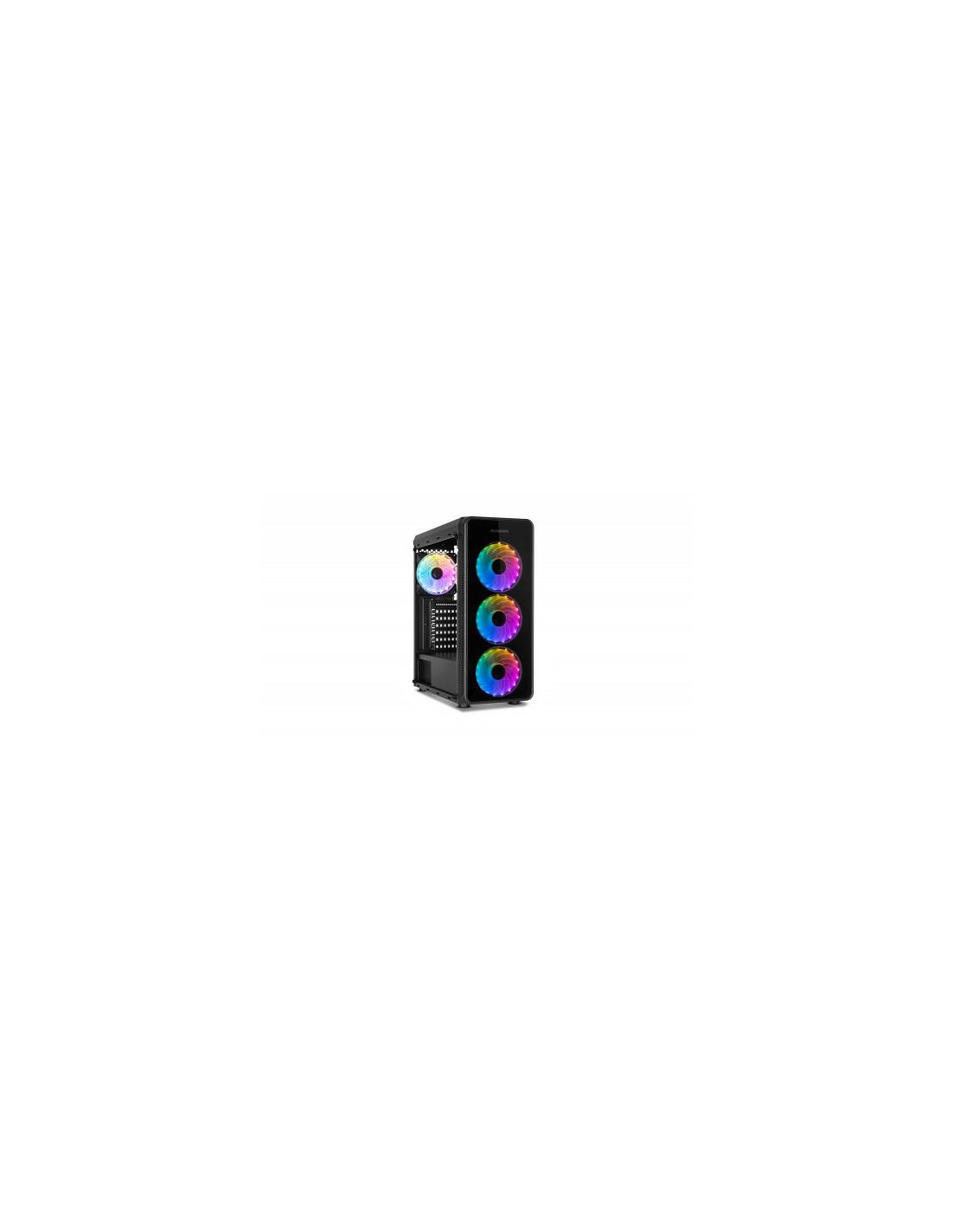 A caixa Nox Hummer TGM é uma semitorre que combina um design moderno com uma excelente capacidade de expansão. Os painéis laterais e frontais em vidro temperado oferecem uma vista deslumbrante dos componentes internos, realçada pela iluminação RGB integrada. Esta iluminação RGB é facilmente controlada através de um botão no painel superior, permitindo selecionar diferentes modos de iluminação. No topo também encontra dois portas USB 2.0, uma porta USB 3.0 e conectores de áudio. Construída em aço de alta qualidade, a Hummer TGM suporta placas-mãe ATX, Micro-ATX e Mini-ITX. O interior oferece espaço amplo para acomodar componentes de alto desempenho, incluindo coolers de CPU até 150 mm de altura e placas gráficas até 370 mm de comprimento (310 mm se utilizar um sistema de refrigeração líquida). A gestão de cabos é otimizada com um espaço de 23 mm, permitindo uma organização limpa e eficiente. O sistema de refrigeração é bastante versátil, com possibilidade de instalar até três ventiladores de 120 mm na frente, dois de 120 mm no topo e um de 120 mm na traseira. Também é compatível com radiadores de refrigeração líquida de 240 mm na parte frontal. Para armazenamento, oferece duas baias para HDDs de 3.5 polegadas e duas para SSDs de 2.5 polegadas, num compartimento isolado na parte inferior para melhor gestão térmica. As dimensões são 440x420x198mm e o peso é de 4,5kg.
