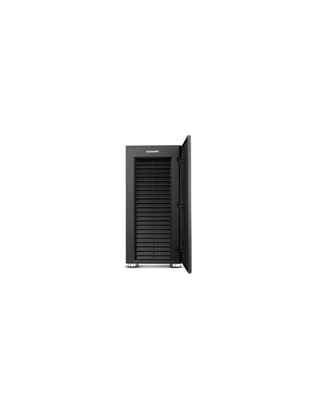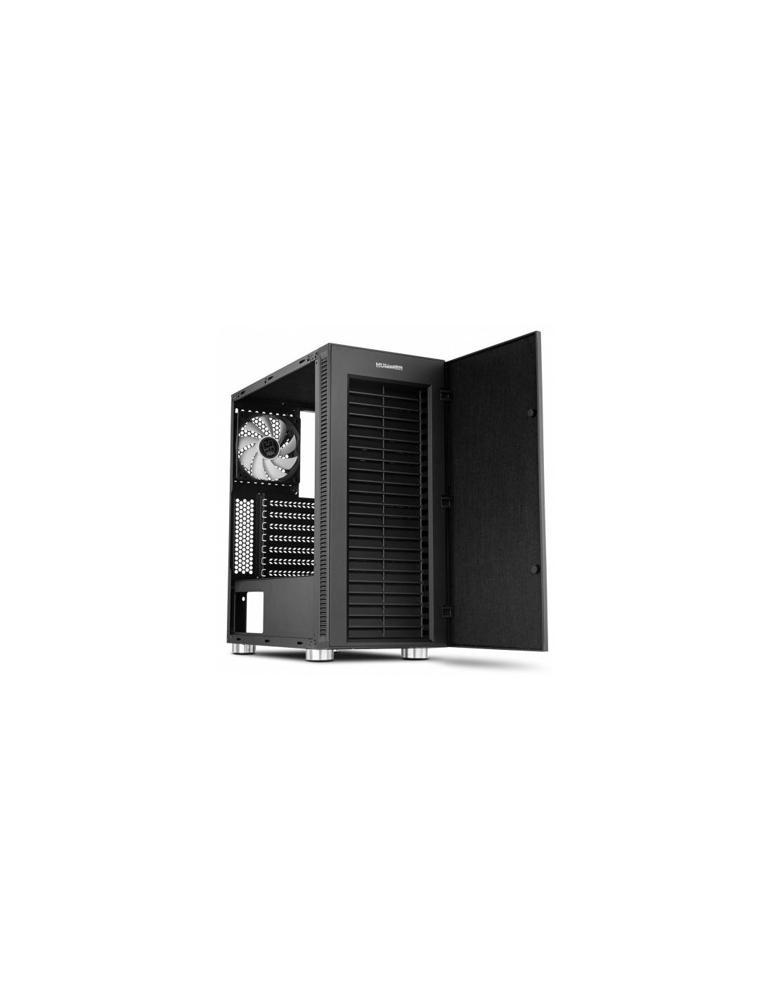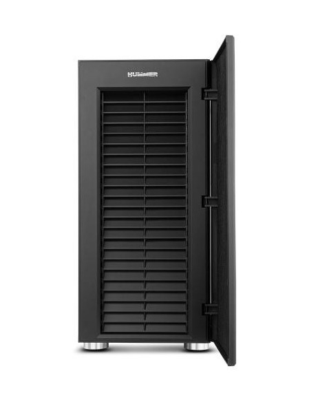 A Nox Hummer Void é uma caixa de computador de formato semitorre (Midi Tower), projetada para oferecer um equilíbrio entre desempenho e silêncio. O seu design elegante e minimalista, característico da linha Hummer, é realçado pelos painéis laterais, frontal e superior com amortecedores de ruído, que reduzem significativamente o nível de ruído gerado pelos componentes internos. A caixa suporta placas-mãe ATX, Micro-ATX e Mini-ITX, oferecendo compatibilidade com uma vasta gama de configurações. O interior espaçoso permite a instalação de placas gráficas com comprimento máximo de 320mm e coolers de CPU com altura máxima de 154mm. A gestão de cabos é facilitada através de um sistema de 21mm de espaço disponível para organização dos mesmos, contribuindo para uma melhor circulação de ar e um aspecto interno mais organizado. A refrigeração é um ponto forte desta caixa. Possui espaço para até seis ventoinhas: três de 120mm (ou duas de 140mm) na frente (duas incluídas), e uma de 120mm na parte traseira (incluída). Também suporta sistemas de refrigeração líquida com radiadores de até 240mm e 280mm na parte frontal e de 120mm na traseira. No painel superior, encontra-se um painel de controlo simples e intuitivo para os ventiladores, além de duas portas USB 2.0, uma porta USB 3.0 de alta velocidade e conectores de áudio.