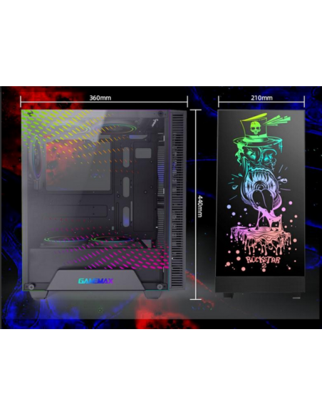 A nova marca para 2020 GameMax orgulha-se de apresentar a caixa de jogo RockStar 2 Mid-Tower PC. Concebida com facilidade de construção e acabada com um vidro de luz ARGB juntamente com vidro frontal no modo de luz ARGB, vidro de luz dupla. É com um ARGB V3.0 PWM , ARGB, Controlador Remoto, Com efeito perfeito único, o modelo Sync light em dupla superfície de vidro. O RockStar 2 pode suportar até 5 ventoinhas e vem com uma cabeça ARGB de 3 pinos para se ligar directamente a cada uma das suas ventoinhas ou tiras ao HUB, permitindo-lhe controlar as suas ventoinhas e tiras de LED através de firmware incorporado. O RockStar 2 tem uma cobertura de PSU de comprimento total, compartimentos de HDD separados e muitos orifícios recortados para gestão de cabos significa que a caixa oferece estilo, desempenho e a derradeira experiência.