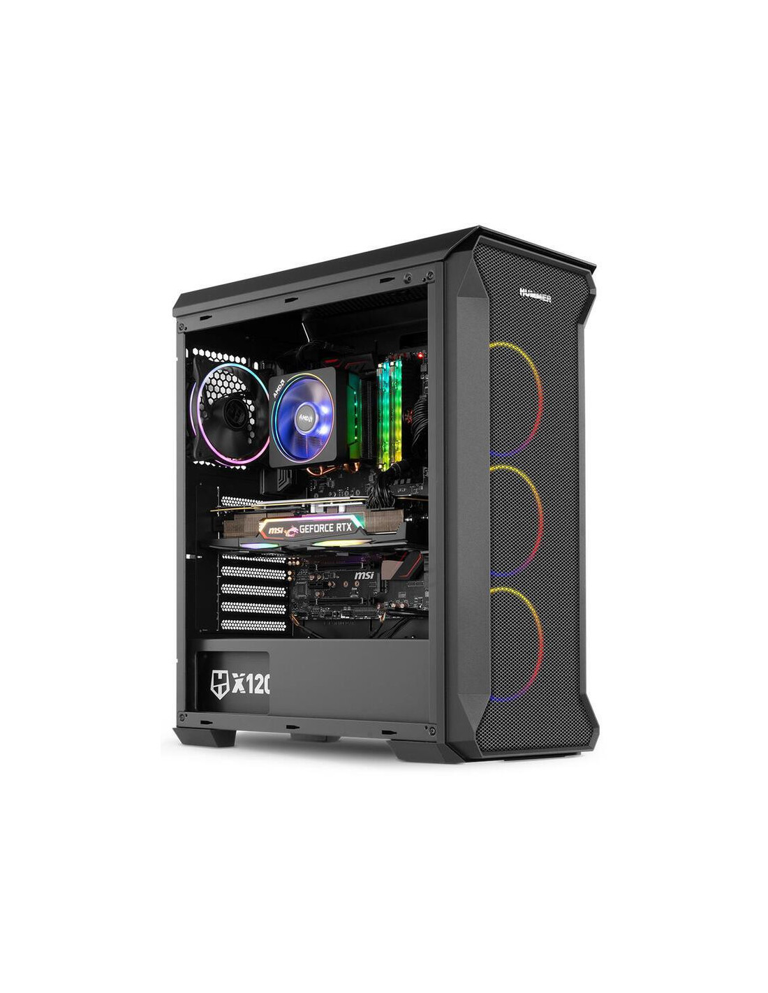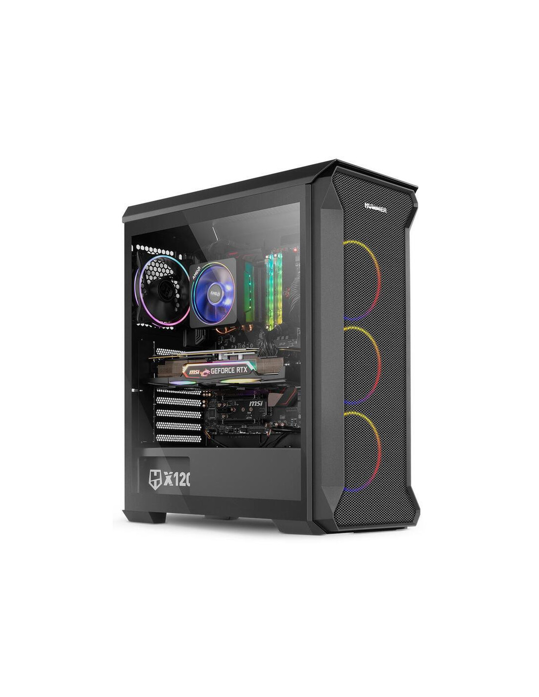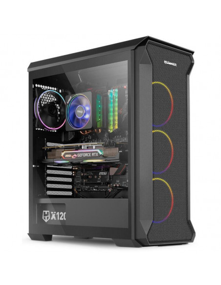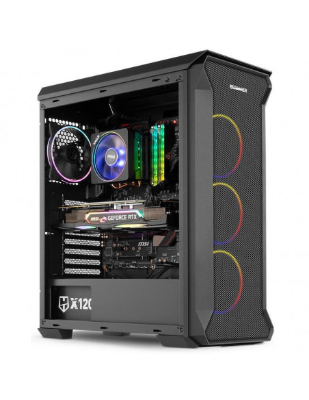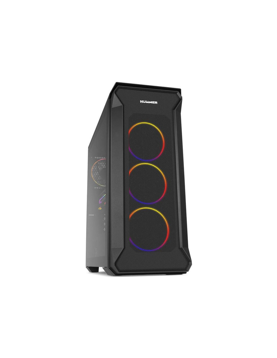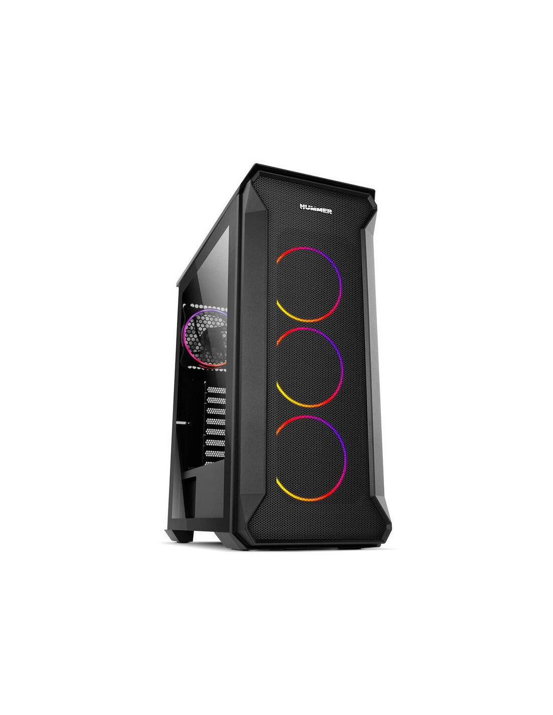 A caixa PC Nox Hummer Quantum é uma torre Mini-Tower com um design moderno e arrojado. Integra quatro ventoinhas ARGB de 120mm, um painel lateral em vidro temperado e amplo espaço interno para componentes de alto desempenho.