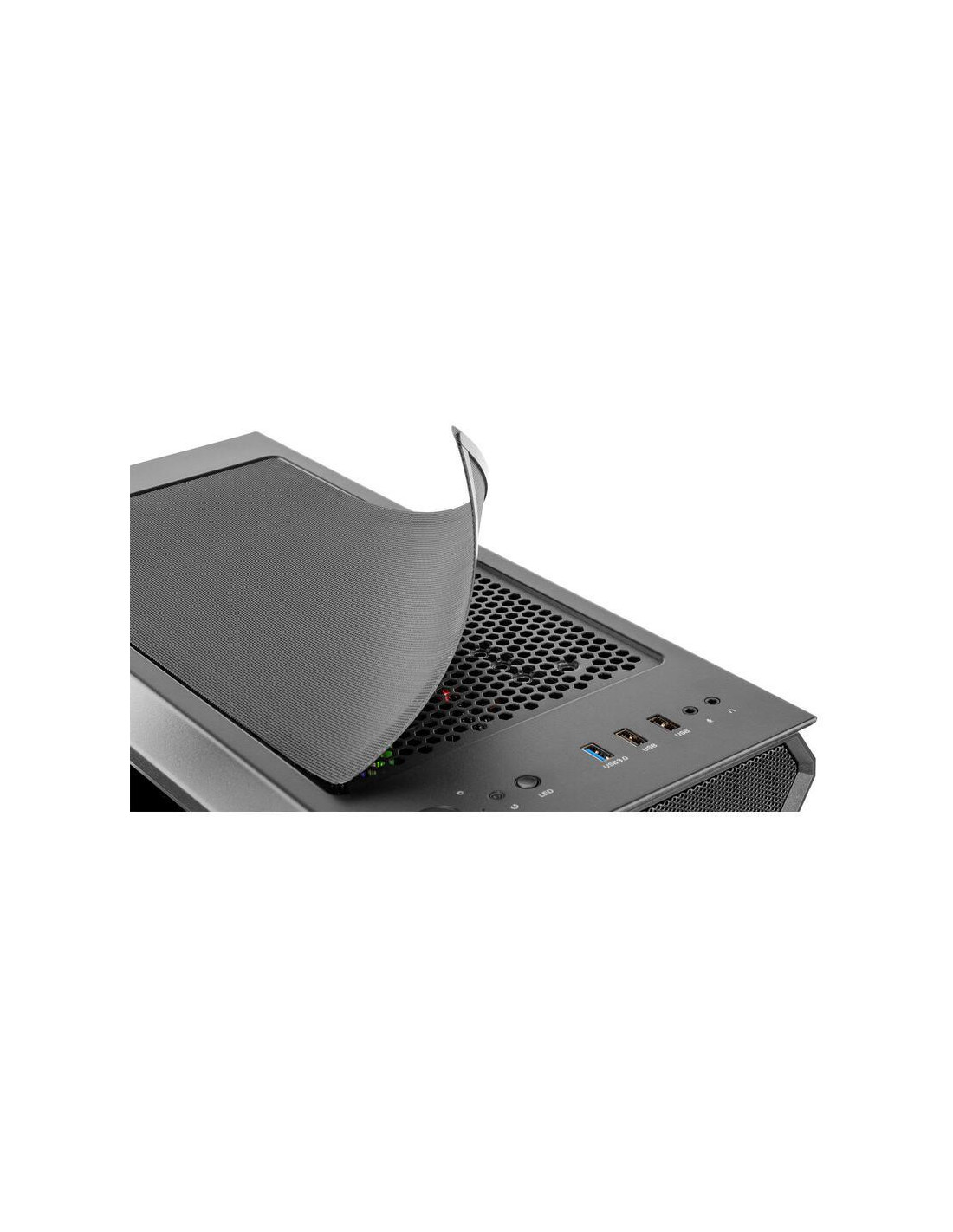 O espaço interior generoso permite acomodar placas gráficas com até 32,5 cm de comprimento, dissipadores de CPU com até 16,8 cm de altura e fontes de alimentação com até 22 cm de comprimento. Dispõe de sete baias para discos de 2,5 polegadas e duas baias para discos de 3,5 polegadas, oferecendo amplo espaço de armazenamento para os seus dados. Para uma maior comodidade, integra dois conectores USB 2.0 e um conector USB 3.2 Gen 1 (3.1 Gen 1), permitindo uma fácil conexão dos seus periféricos. Inclui também conectores de áudio separados para entrada e saída.