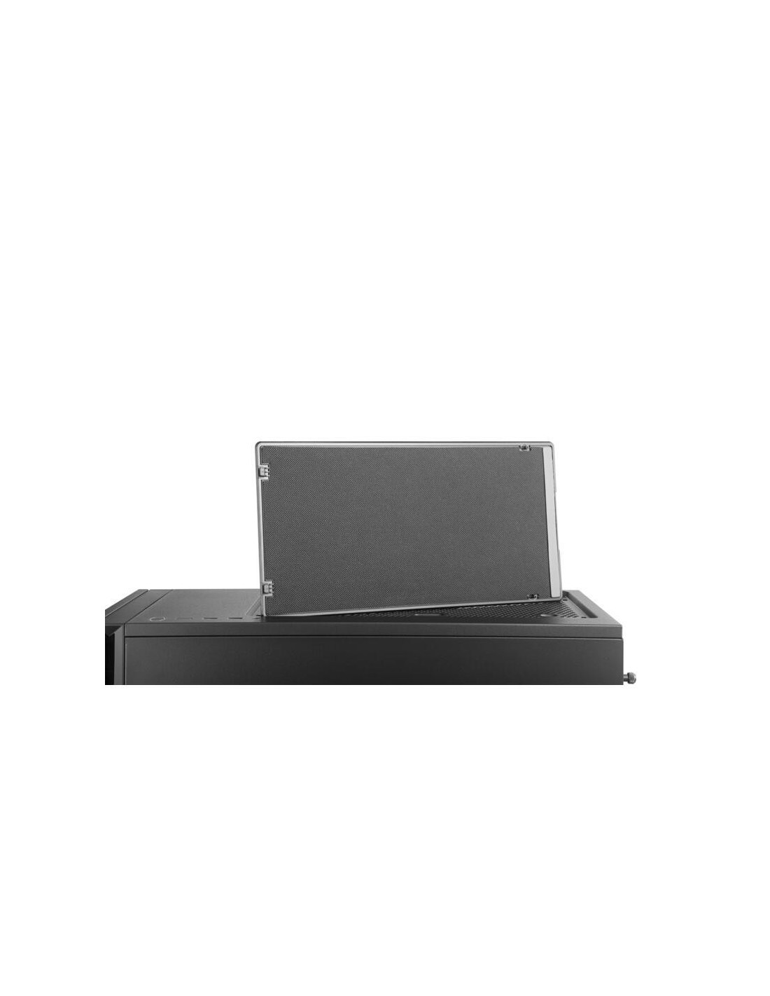 No painel frontal, encontra dois conectores USB 3.0 (3.1 Gen 1), entrada e saída de áudio, um botão liga/desliga e um botão de reset. A fonte de alimentação é instalada na parte inferior, compatível com ATX e PS2, mas não está incluída na caixa. As suas dimensões são de 209 mm x 478 mm x 470,5 mm (largura, profundidade, altura), com um volume de 44,8 L e um peso de 8,43 Kg. A caixa também inclui filtro anti-pó, assegurando a proteção dos componentes contra a acumulação de poeira.