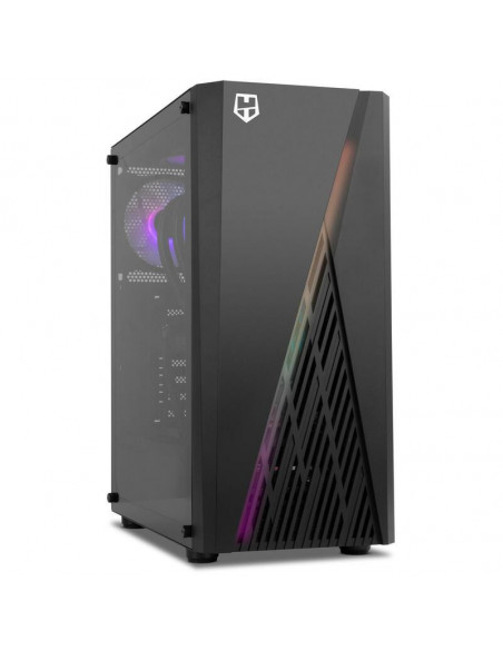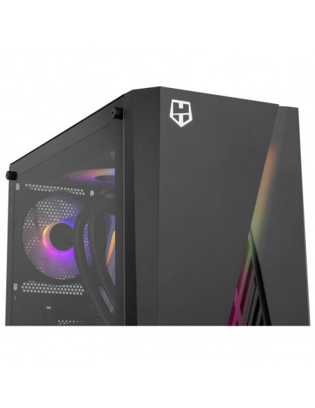 A caixa de PC Nox Hummer Frost é uma semitorre projetada para oferecer um equilíbrio entre estilo e funcionalidade. O seu design moderno inclui uma tira frontal de LED ARGB rainbow que proporciona uma iluminação vibrante e personalizável, enquanto a janela lateral em vidro temperado permite apreciar os componentes internos. A caixa é construída com um chassi de aço SPCC de 0.5 mm (interior negro), painel lateral em vidro temperado e frontal em plástico ABS, garantindo durabilidade e proteção aos seus componentes.