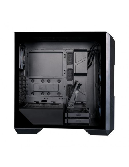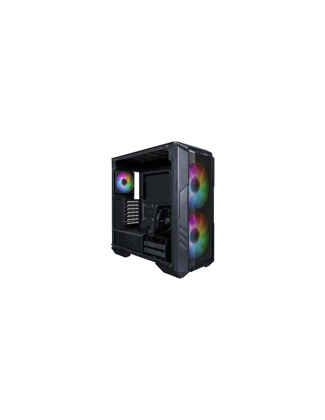 A caixa Cooler Master HAF 500 é uma Midi Tower para PC, com design moderno e elegante, em preto, com painel lateral em vidro temperado, permitindo a visualização dos componentes internos. Oferece excelente capacidade de refrigeração com suporte para vários ventiladores e radiadores, além de espaço para placas gráficas de grande dimensão. Integra iluminação ARGB e vários conectores na parte frontal.