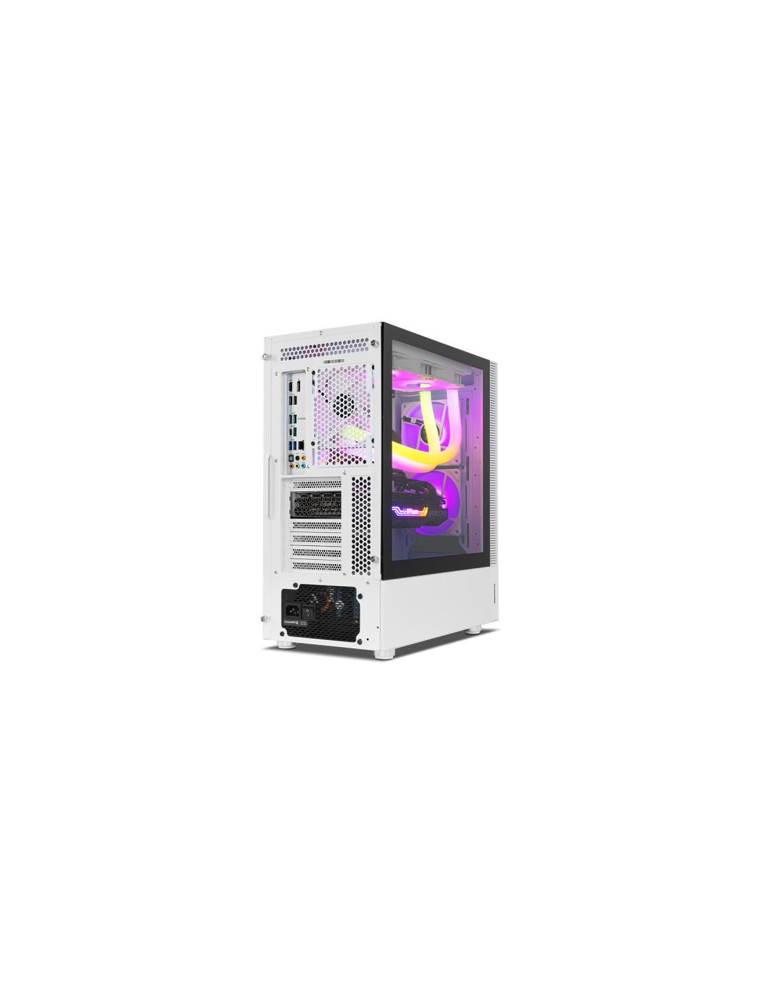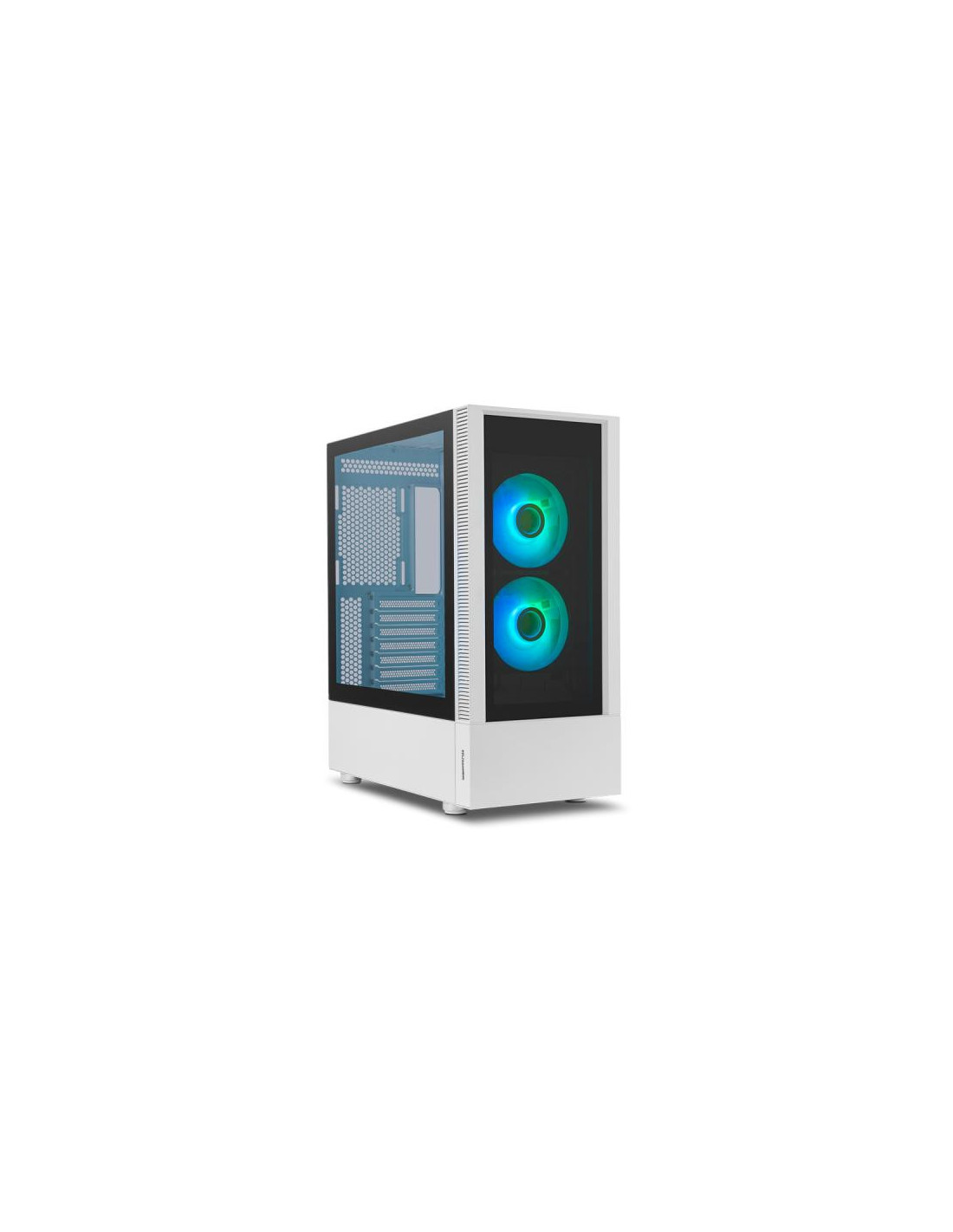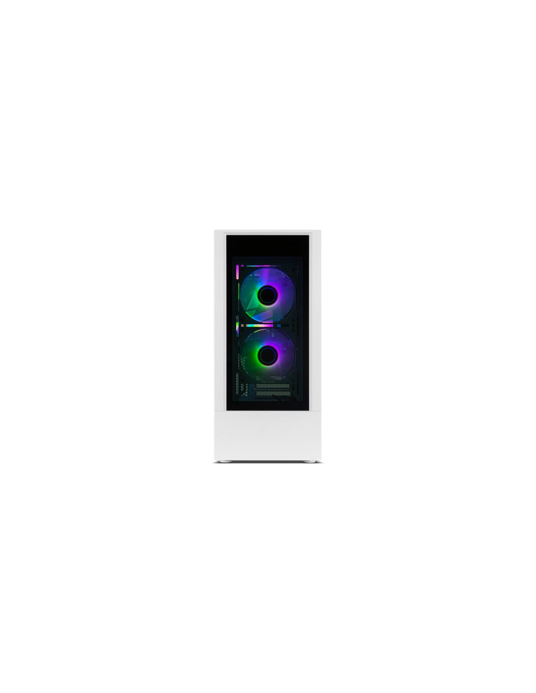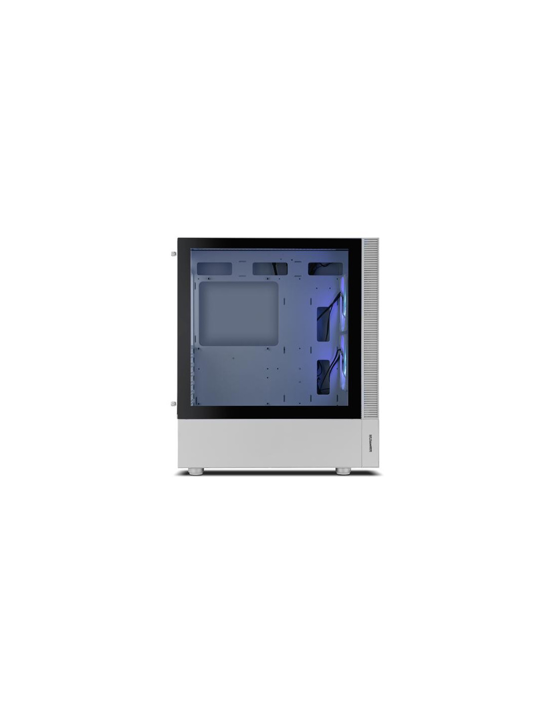 A Nox Hummer Nemesis é uma caixa de computador Midi Tower de alta qualidade, com um design minimalista e elegante em branco. Destacam-se os painéis laterais e frontais em cristal temperado, que permitem visualizar o interior do seu PC. Inclui dois ventiladores ARGB que garantem um bom fluxo de ar, e tem espaço para até oito. Compatível com placas gráficas de até 350 mm e sistemas de refrigeração líquida, oferece ampla compatibilidade e facilidade de montagem. Na parte superior, encontra portas USB 3.0 e 2.0, além de conexões de áudio.