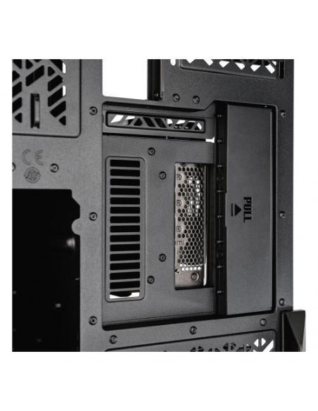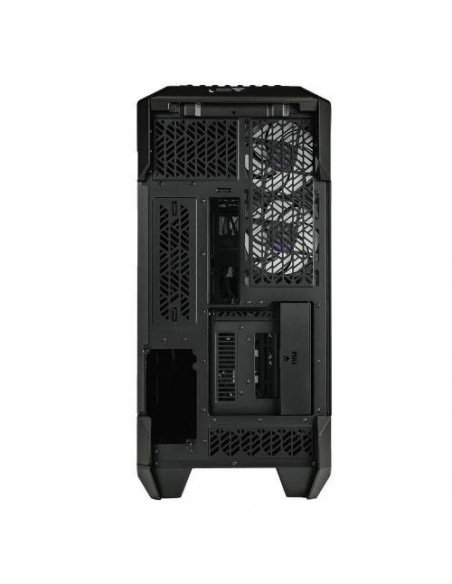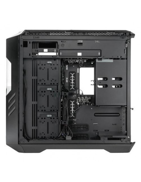 Em termos de refrigeração, a caixa vem com dois ventiladores frontais de 200 mm instalados e dois ventiladores traseiros de 120 mm, proporcionando um fluxo de ar eficiente. No entanto, a sua capacidade de refrigeração vai além do que vem incluído, permitindo a adição de mais ventiladores. Pode suportar até três ventiladores adicionais na parte frontal (com diâmetros de 120, 140 ou 200 mm), três na parte inferior (120 ou 140 mm), e dois na parte traseira (120 mm), e até seis no topo (120, 140 ou 200 mm). A sua capacidade de acomodar radiadores de até 360 mm na frente e 420 mm na parte superior permite a utilização de sistemas de refrigeração líquida de alta performance.