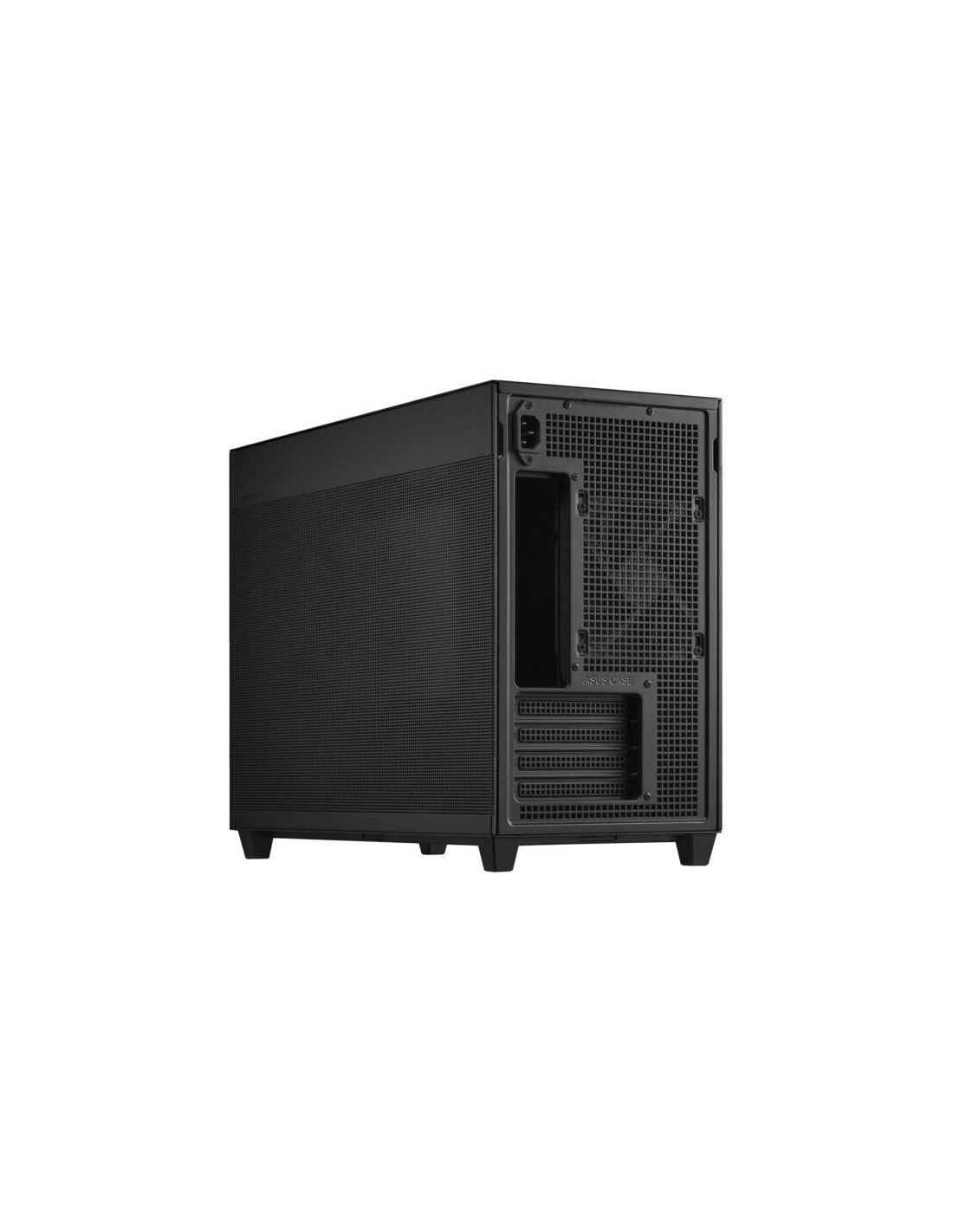 Caixa Gaming ASUS Prime AP201 TG, em formato Mini Tower, com design elegante em preto. Ideal para sistemas Micro-ATX e Mini-ITX. Oferece espaço para até 3 discos rígidos de 3.5" e 1 disco SSD de 2.5", com excelente gestão de cabos. Inclui uma ventoinha traseira de 120mm e capacidade para mais ventoinhas.