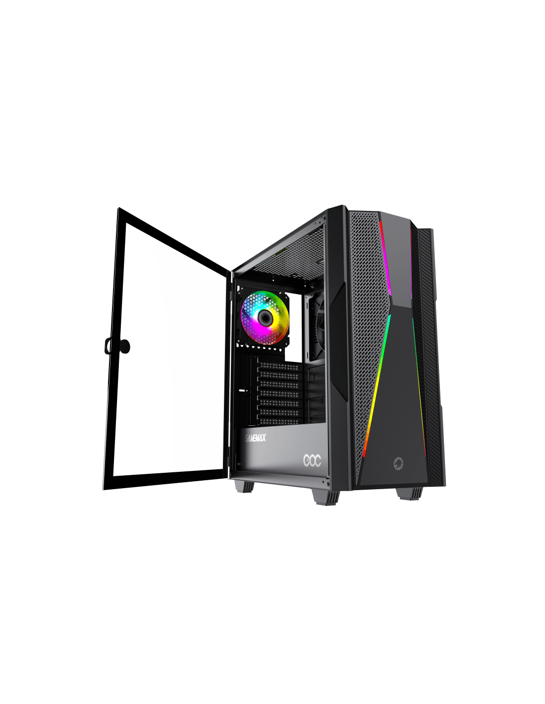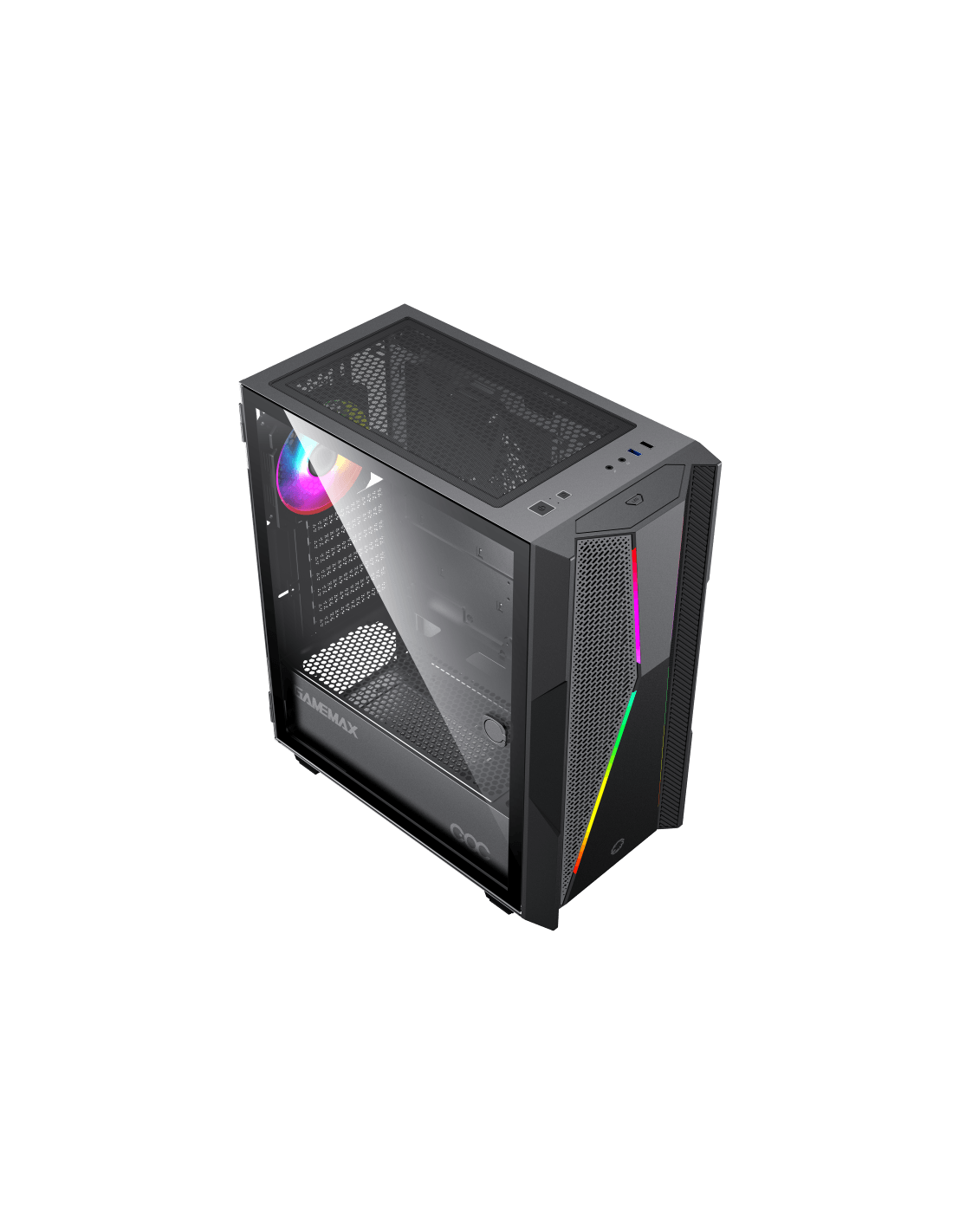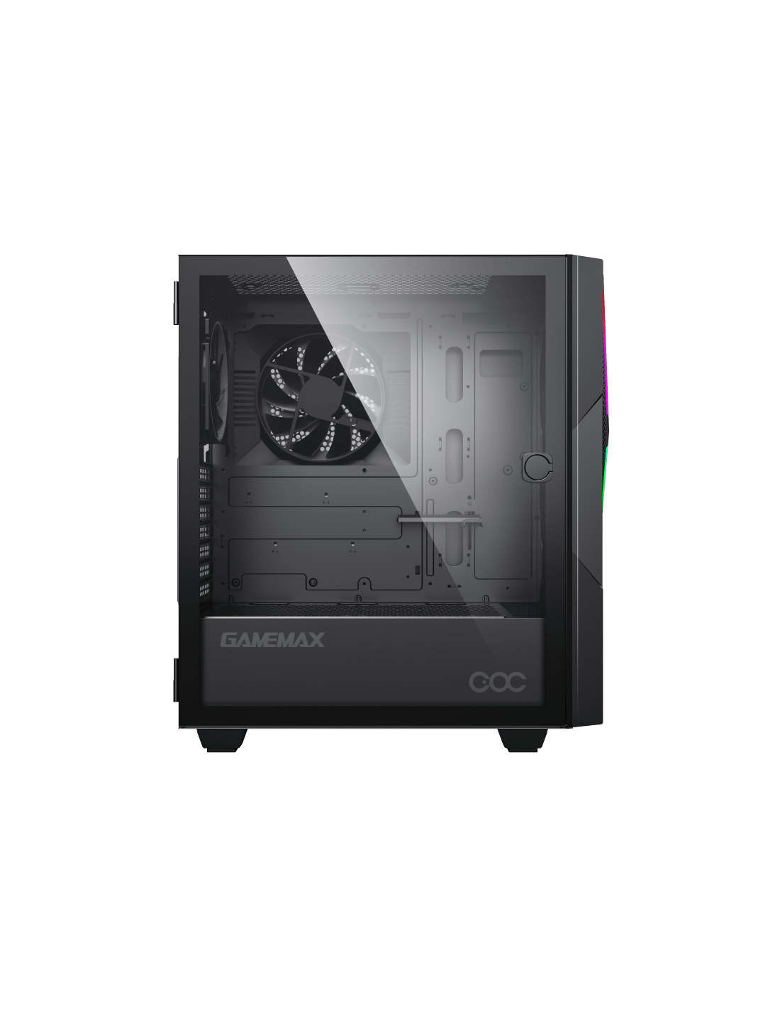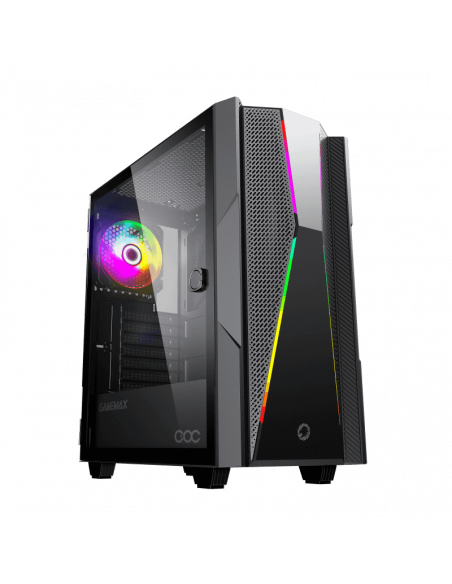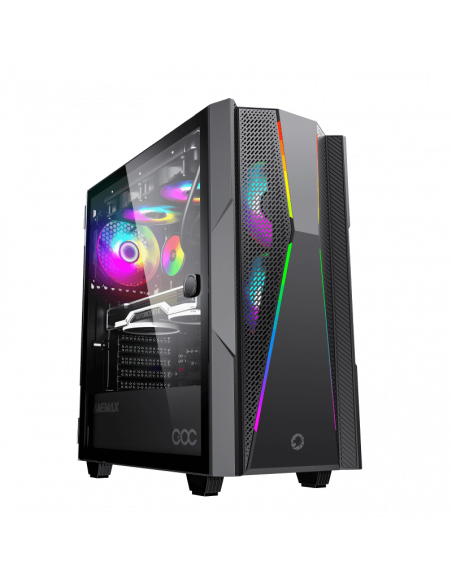 A caixa Gamemax Typhoon COC é uma caixa Mid Tower ATX, ideal para entusiastas de gaming que procuram um design arrojado e funcionalidades avançadas. O seu design foi pensado para oferecer o máximo desempenho em termos de arrefecimento e estética, integrando o sistema patenteado COC (Cooling & Overclocking) para um melhor controlo da temperatura da motherboard. A frente da caixa apresenta uma fita aRGB pré-instalada e um controlador aRGB integrado, permitindo personalizar a iluminação e criar um ambiente de jogo imersivo.