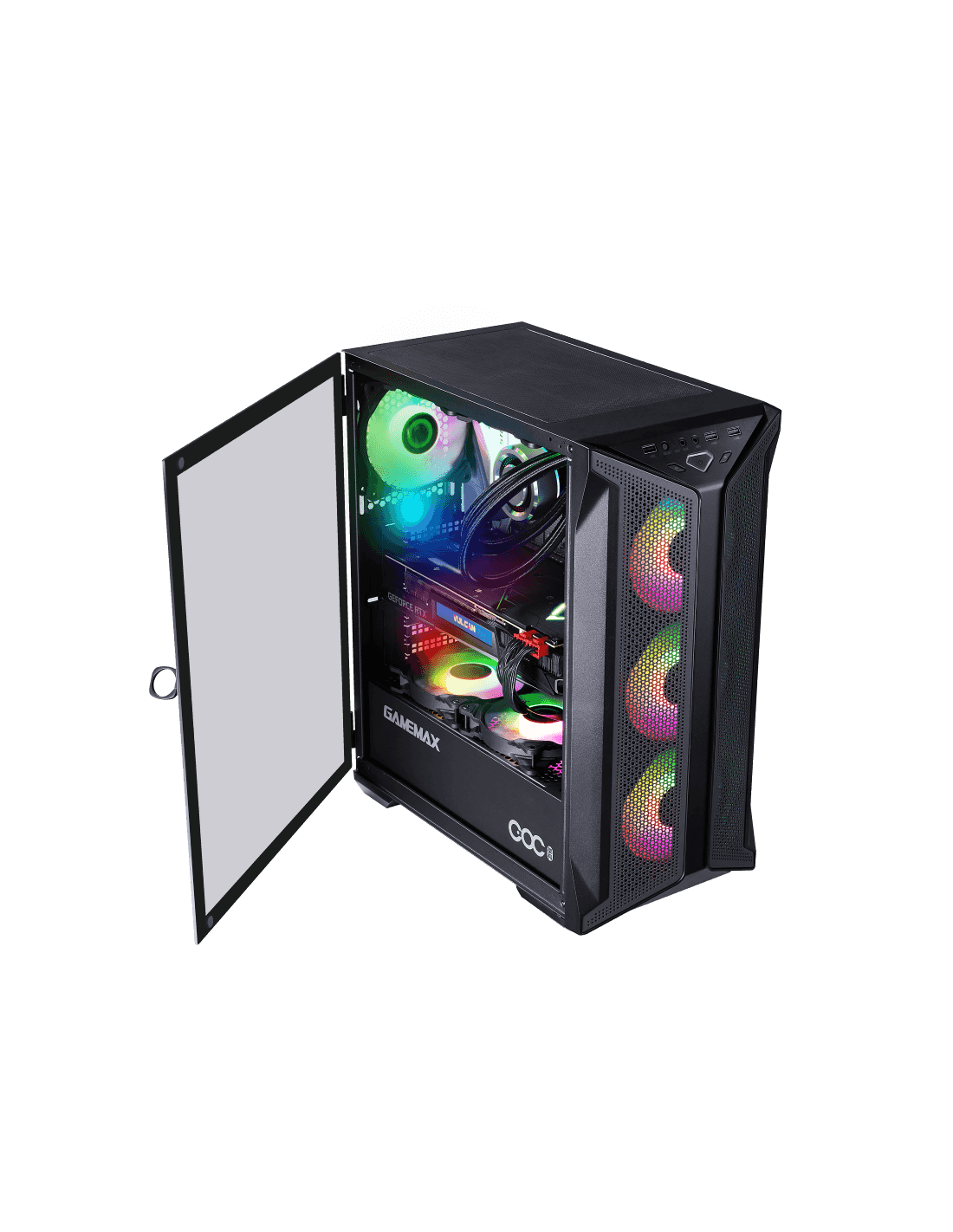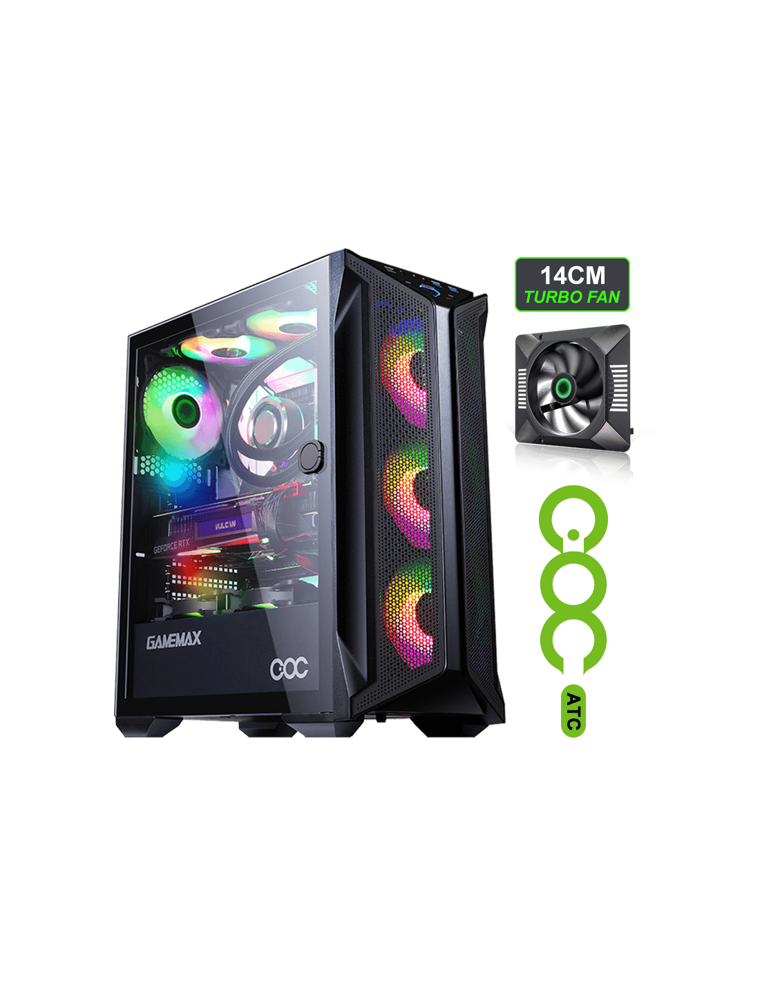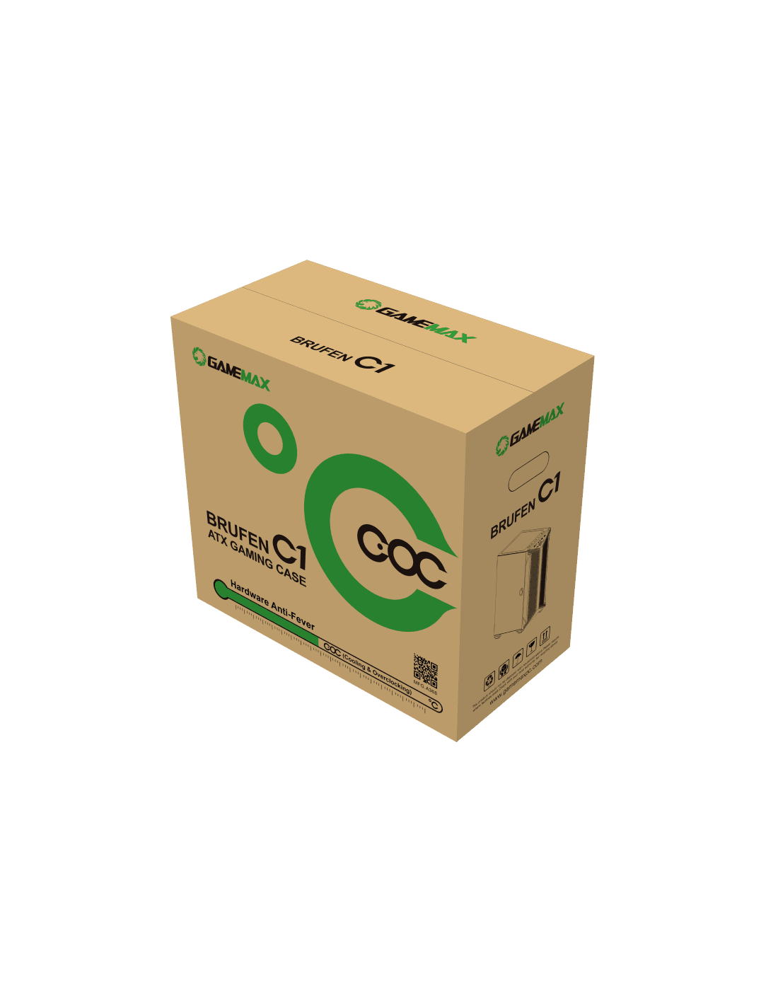 O sistema COC foi desenvolvido pela GameMax, após extensas pesquisas e desenvolvimento, resultando em duas patentes de invenção e duas patentes estruturais. A Brufen C1 já vem equipada com três ventiladores aRGB de 120mm pré-instalados na parte frontal e um na traseira, proporcionando uma excelente ventilação desde o primeiro momento. A iluminação aRGB e os modos RGB são controlados através do hub V2.0 PWM + ARGB, que oferece uma gestão eficiente do fluxo de ar e permite personalizar a iluminação.