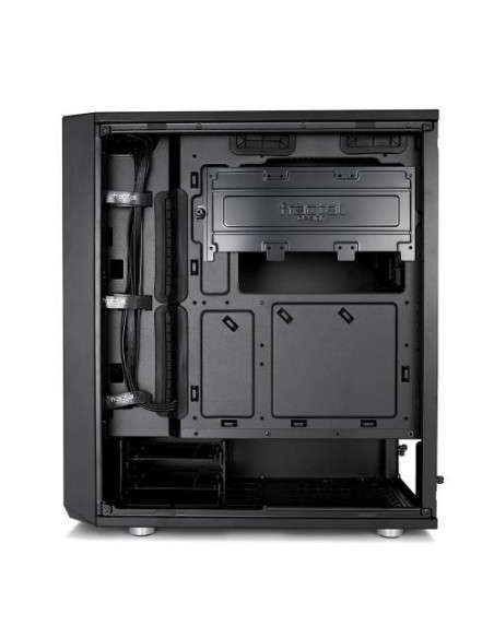 As dimensões da caixa são 212 mm (largura) x 395 mm (profundidade) x 440 mm (altura). A sua localização de fonte de alimentação é traseira e é compatível com fontes ATX. A caixa não inclui uma fonte de alimentação. A inclusão de filtros anti-pó ajuda a manter o interior do sistema limpo, preservando a sua performance a longo prazo. O manual de utilizador está incluído.