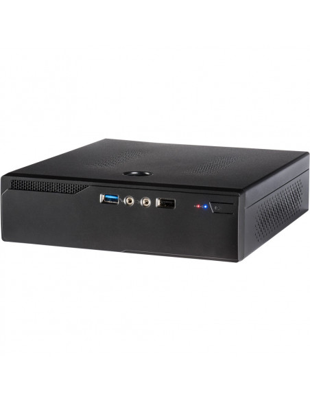 Chassis ultra compacto ( 2 litros ), suporta placas Mini ITX e Thin mini ITX, Frontal: 1xUSB2.0 + 1xUSB3.2 Gen1 + 1 x mic + 1 x auscultadores, AC/DC 120W incluído